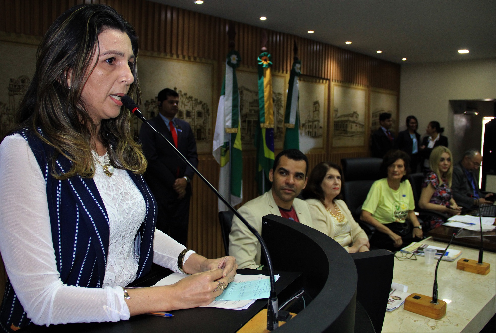 Na solenidade, a diretora do Instituto de Desenvolvimento da Educação (IDE), Cláudia Santa Rosa, apresentou um histórico da luta por educação de qualidade no país, com dados de aprovação e evasão dos alunos em cada série, destacando a importância da Câmara implantar uma frente com esse objetivo. "É importante garantir esse espaço numa casa legislativa porque o desafio de oferecer um ensino de qualidade continua. Precisamos melhorar os índices da educação básica (IDEB), garantir o financiamento da educação, o Fundeb. São muitos temas ligados à educação e que a Frente poderá dar sua contribuição e definir encaminhamentos", prevê Santa Rosa.