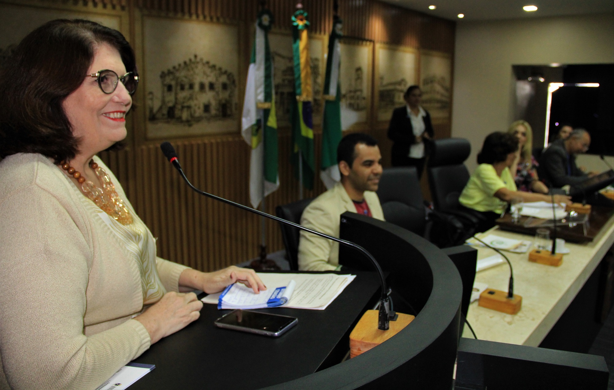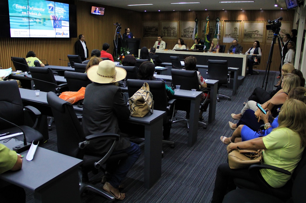 A Câmara Municipal de Natal realizou nesta sexta-feira (31) uma solenidade de lançamento da Frente Parlamentar em Defesa da Educação Pública que é coordenada pela vereadora Eleika Bezerra (PSL). Participaram da cerimônia profissionais da educação, pesquisadores e representantes das secretarias de Educação do Estado e Município, do Instituto Brasileiro de Geografia e Estatística e Federação das Câmaras de Dirigentes Lojistas do Rio Grande.