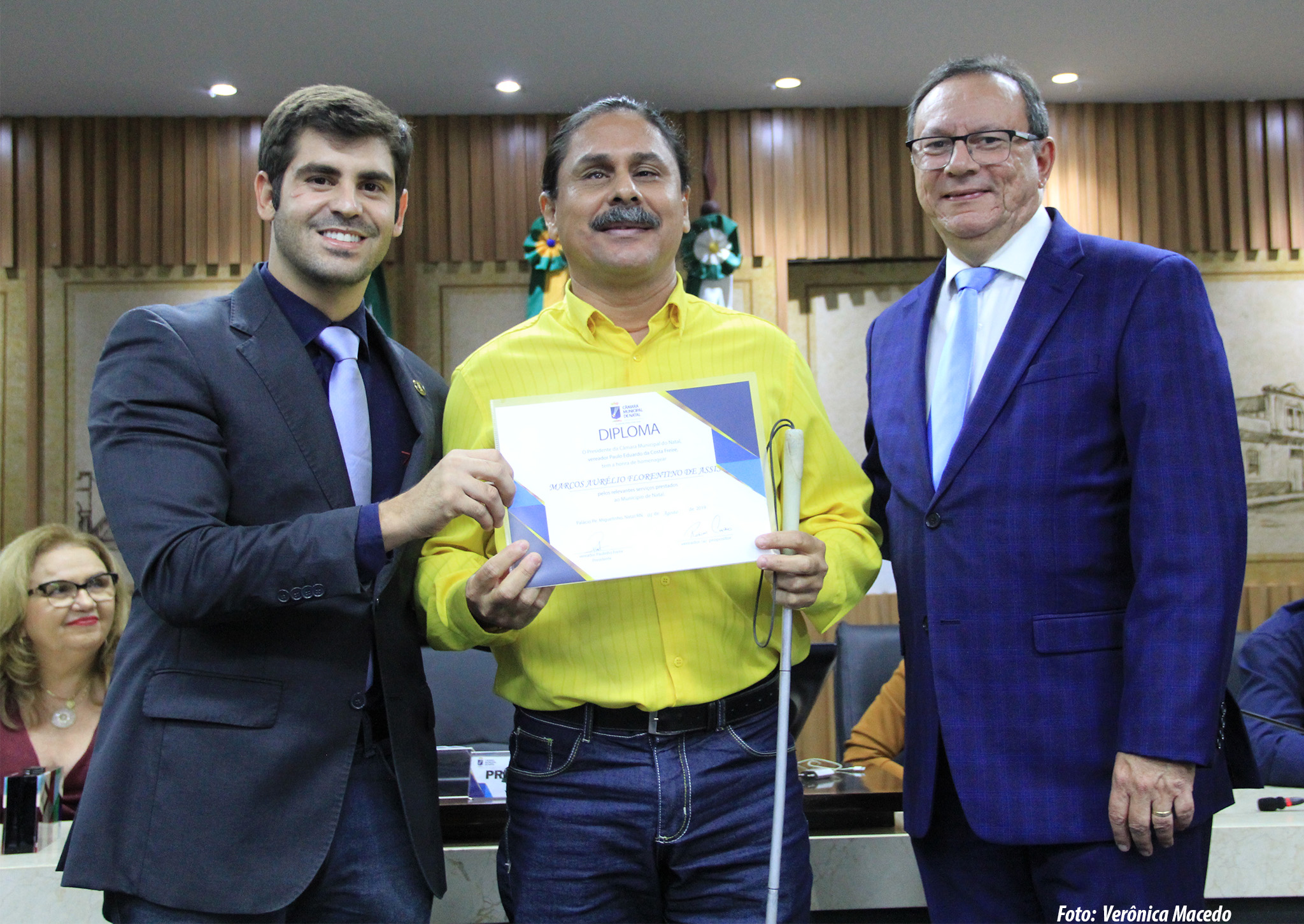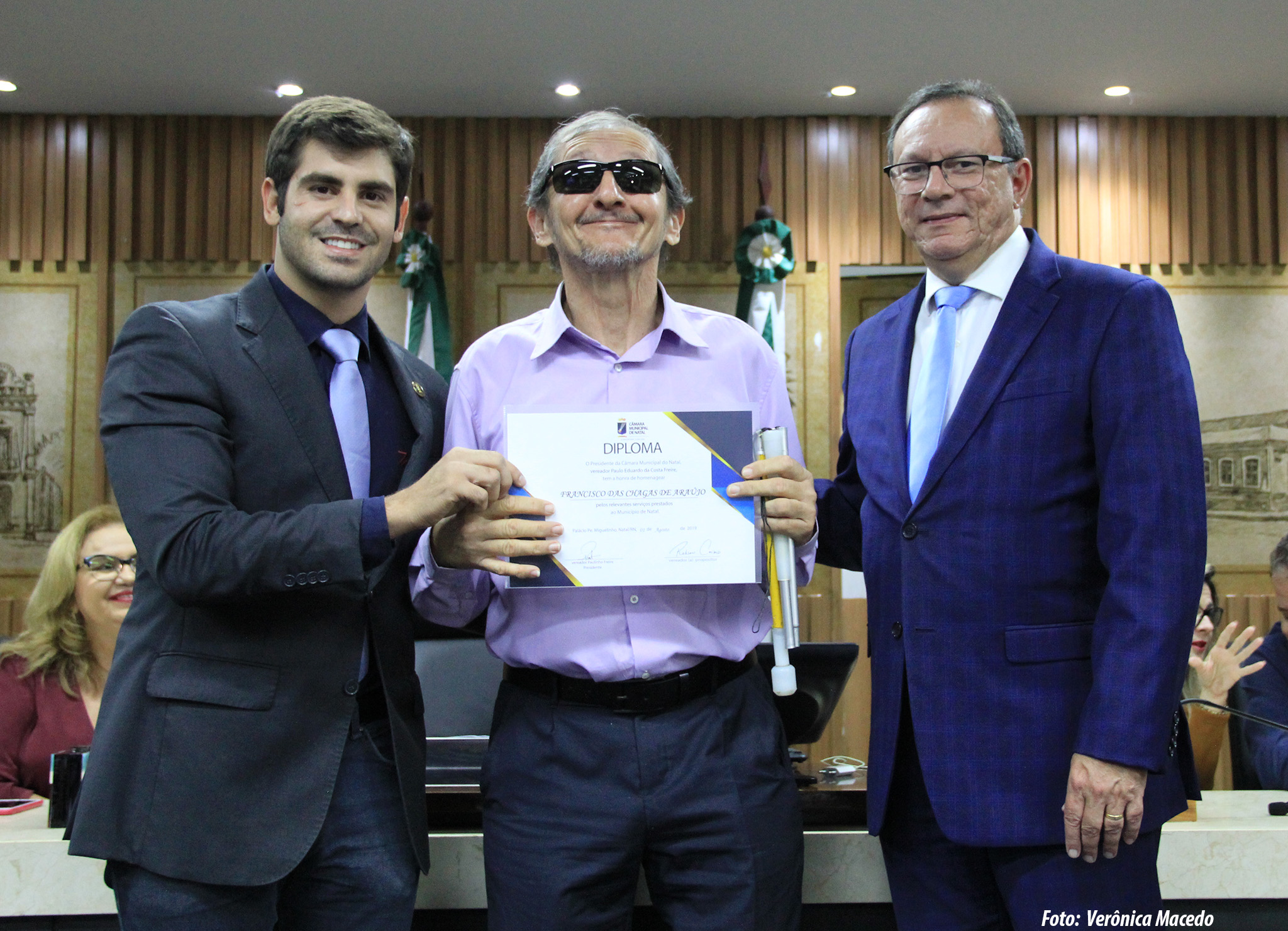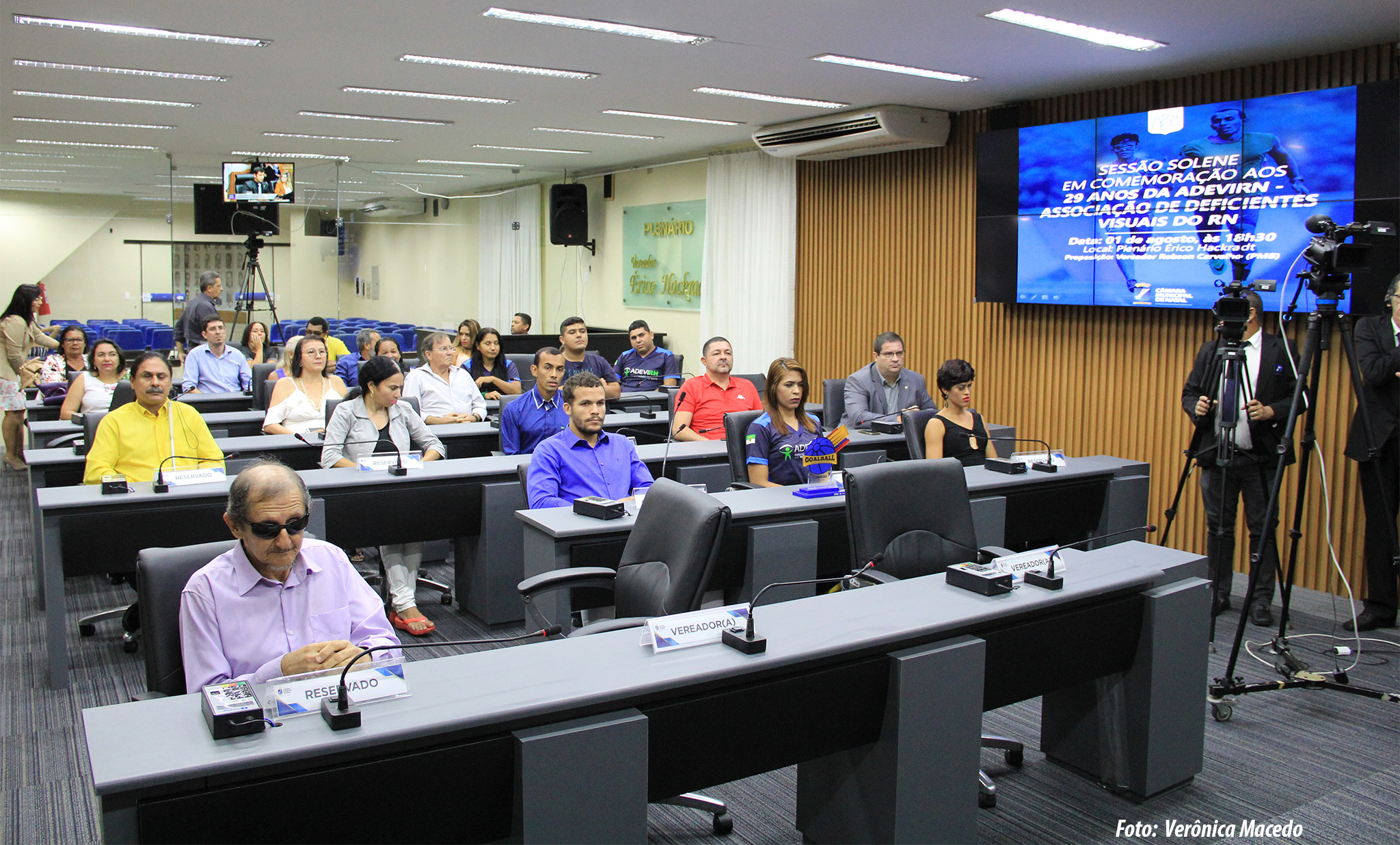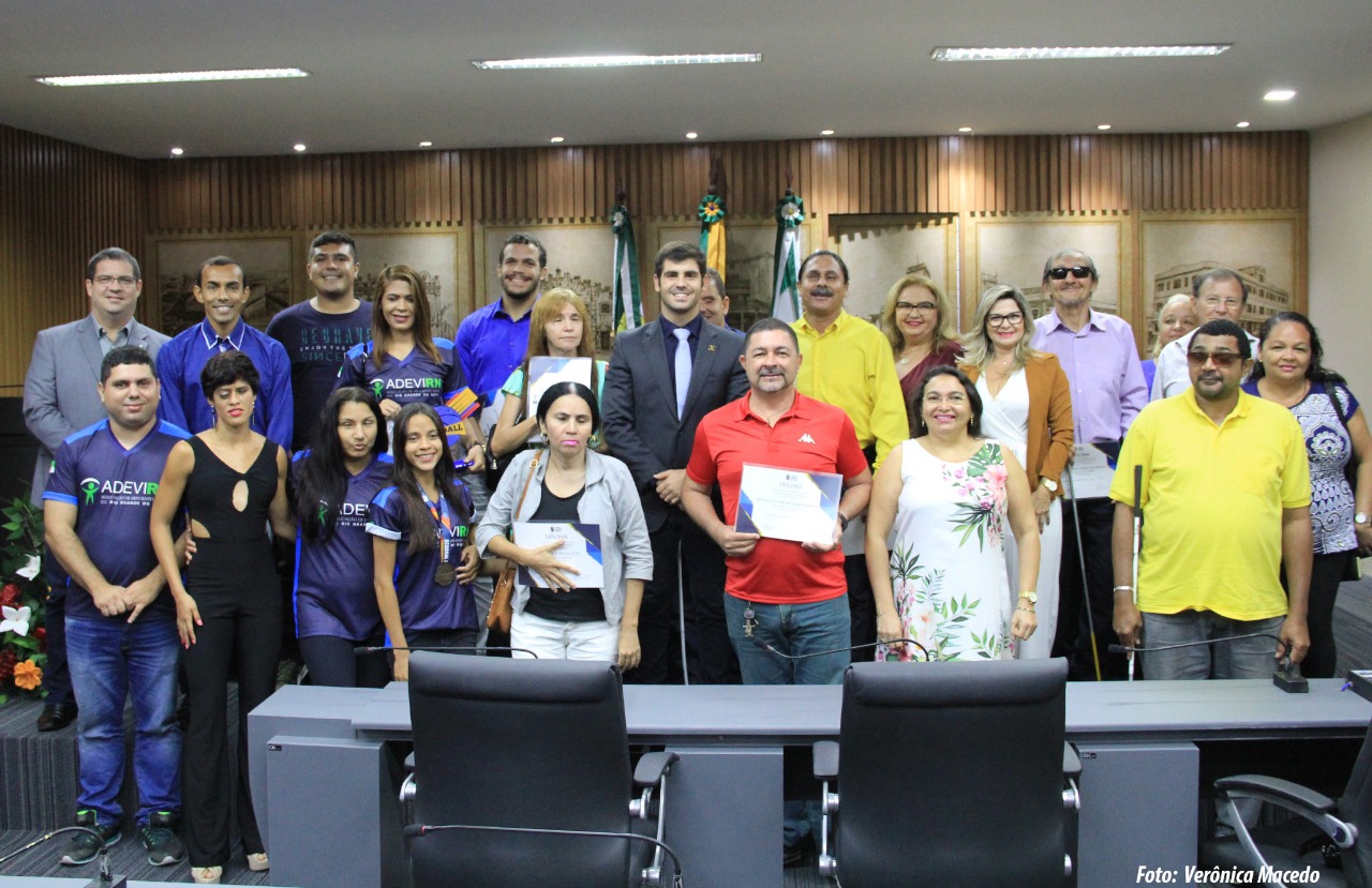 A Câmara Municipal de Natal, através de propositura do vereador Robson Carvalho (PMB), realizou na noite desta quinta-feira (1) uma sessão solene em homenagem aos 29 anos da Associação de Deficientes Visuais do Rio Grande do Norte, entidade de utilidade pública Municipal e Estadual. Na ocasião, foi feita a entrega de diploma meritório para personalidades reconhecidas pelo trabalho em prol das pessoas com deficiência.