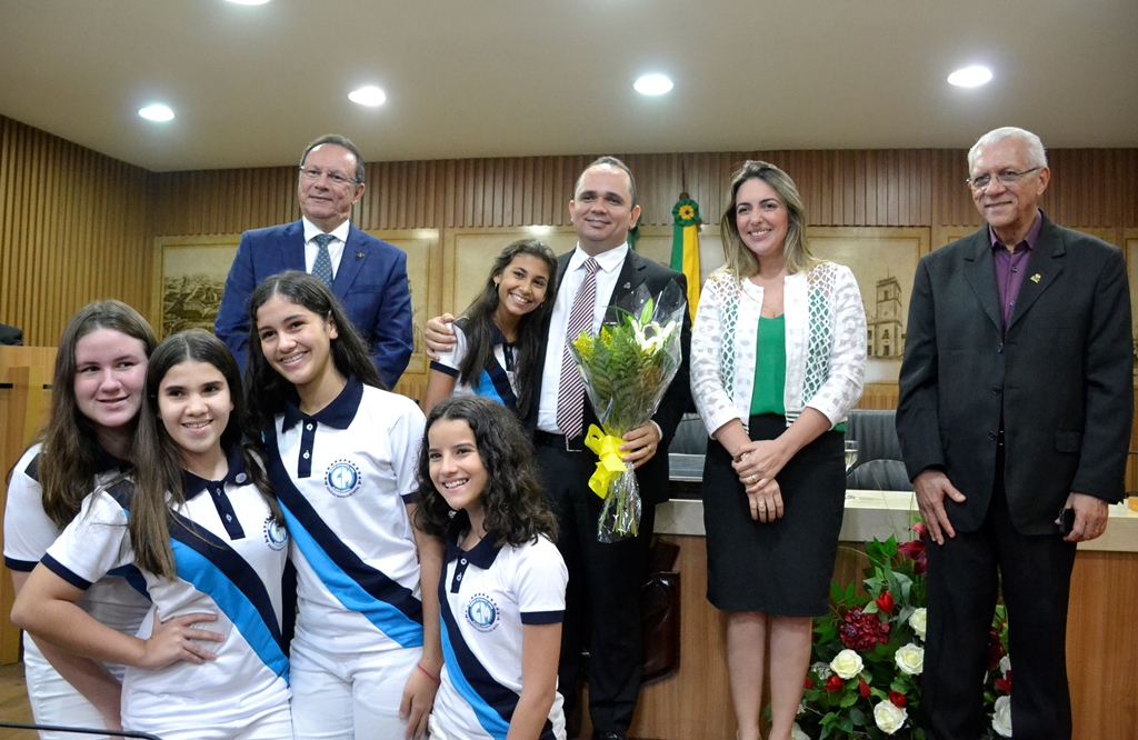 Professores, alunos, dirigentes do Marista, grupo vocal, amigos e familiares: sinônimo de plenário cheio para prestigiar a entrega da maior honraria da Casa, o título honorífico de cidadão natalense para José de Assis Elias de Brito, o diretor do Colégio Marista de Natal. Por proposição da vereadora Ana Paula (PSDC), na noite de ontem (30), a solenidade contou também com a participação do presidente do poder legislativo, vereador Raniere Barbosa (PDT), e dos vereadores Robson Carvalho (PMB), Preto Aquino (PEN), Sueldo Medeiros (PHS) e Aldo Clemente (PMB).