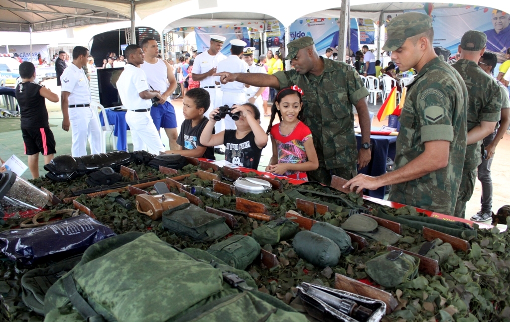 As três instituições militares participam ainda apresentando o trabalho que desenvolvem em terra, céu e mar, distribuindo material informativo e exibindo vídeos institucionais, além de equipamentos e veículos que são utilizados pelos militares.