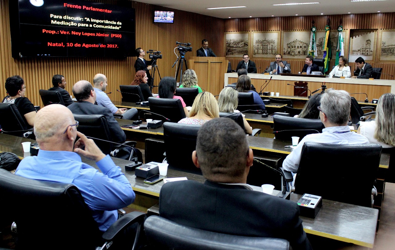 Os 22 voluntários que vão trabalhar no projeto de mediação comunitária como mediadores e conciliadores, foram apresentados nesta manhã (10) durante reunião da Frente Parlamentar de Mediação e Arbitragem, da Câmara Municipal de Natal. Eles passarão pelo curso de formação e capacitação que será coordenado pelo Tribunal de Justiça do estado (TJRN), em parceria com o legislativo natalense. A reunião foi coordenada pelo vereador Ney Lopes Júnior (PSD), autor do projeto que foi aprovado em março passado e já inserido no Plano Plurianual 2018-2021.