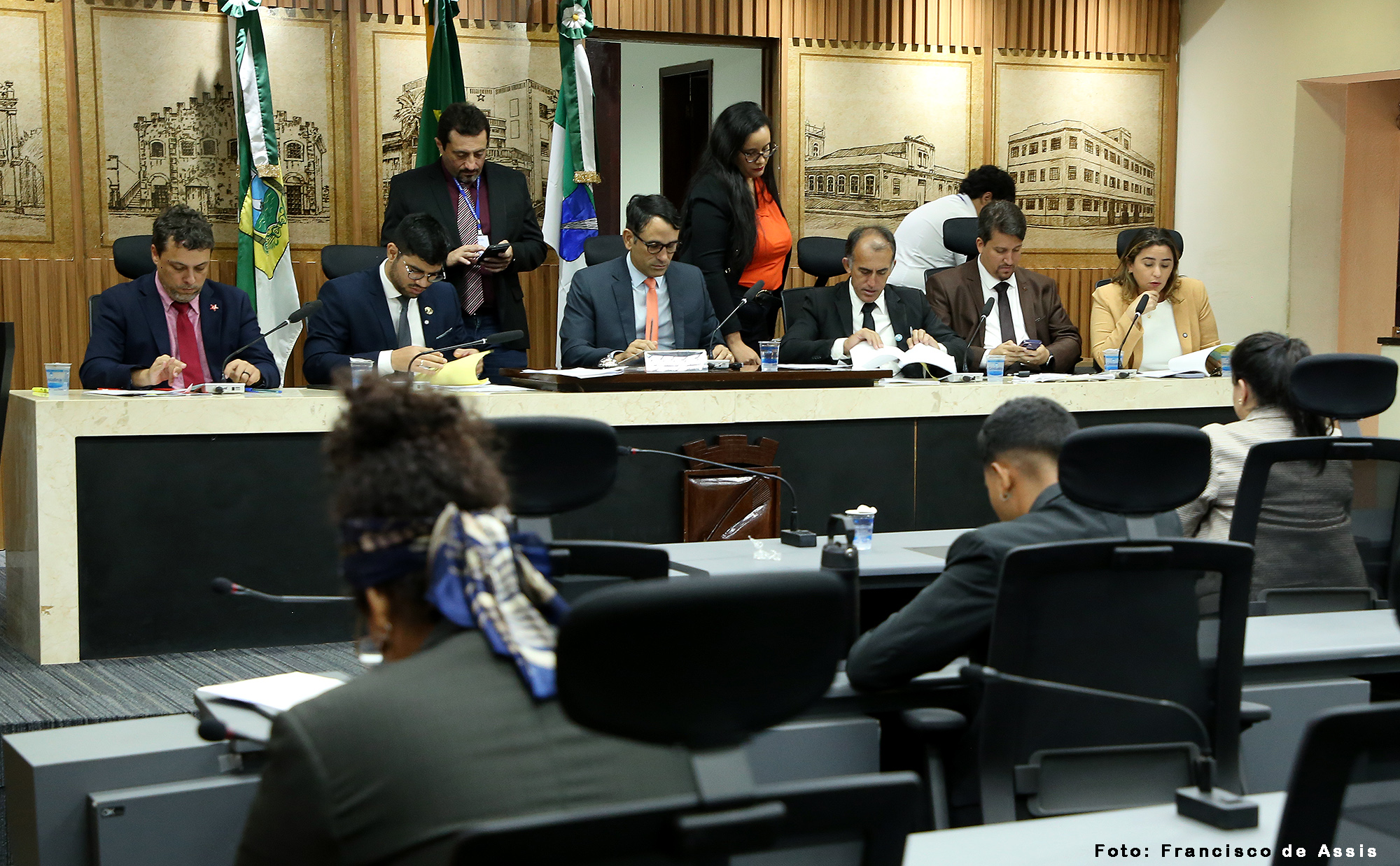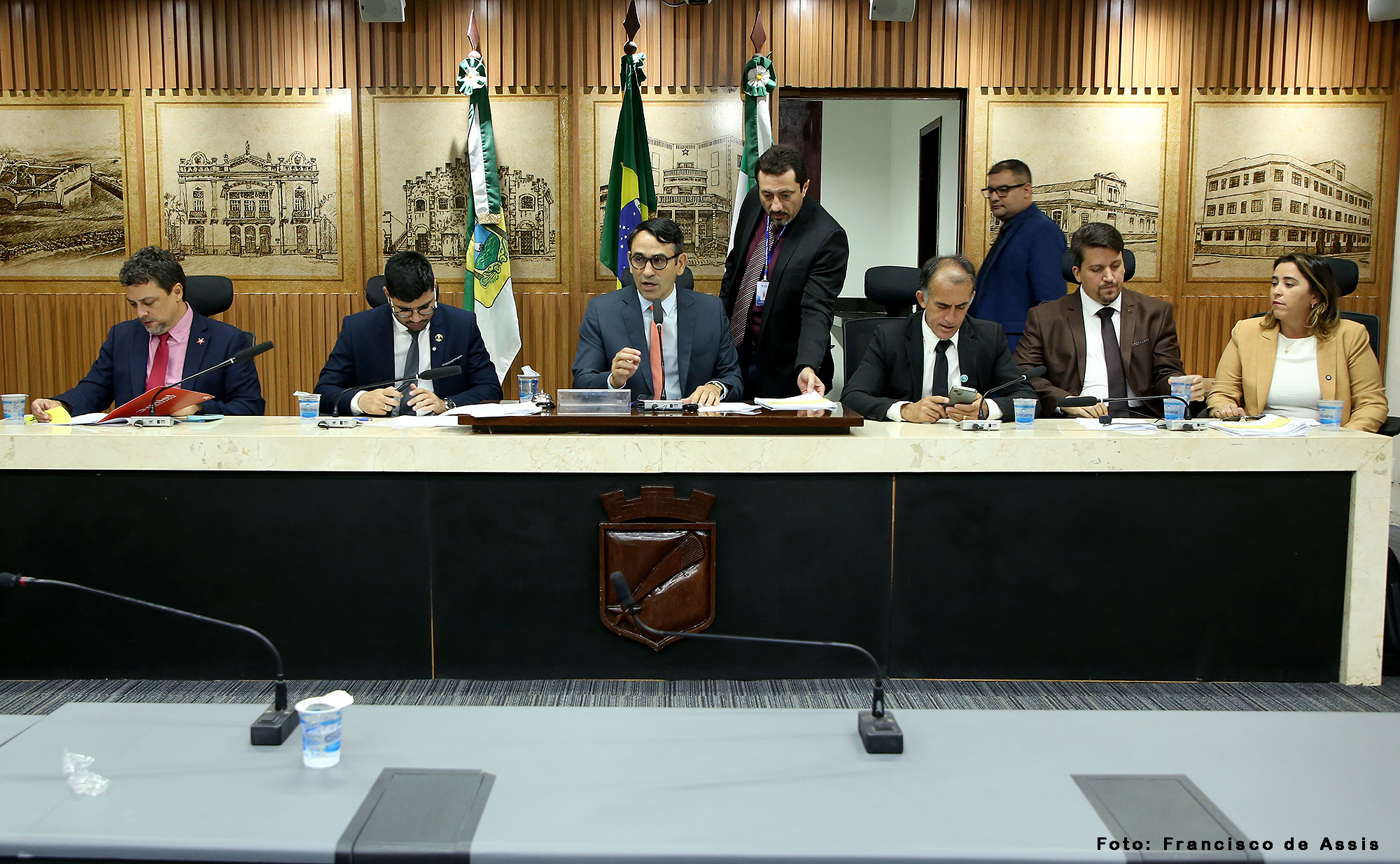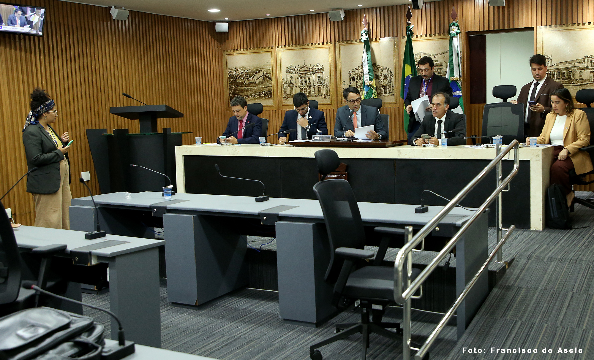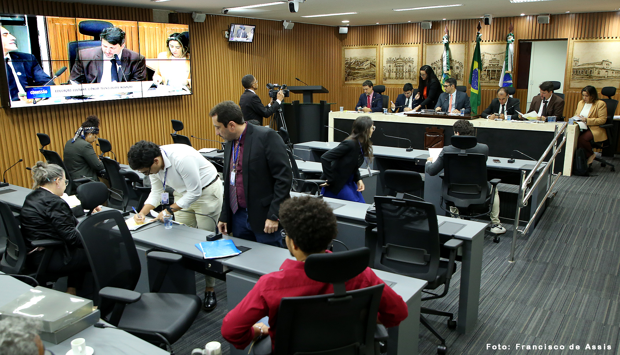 A reunião da Comissão de Educação, Cultura, Ciência, Tecnologia e Inovação foi conduzida por seu presidente, vereador Cláudio Custódio (PP), e contou também com a presença da vereadora Samanda Alves (PT), e dos vereadores Daniel Valença (PT), Pedro Henrique (PP) e Preto Aquino (Podemos).