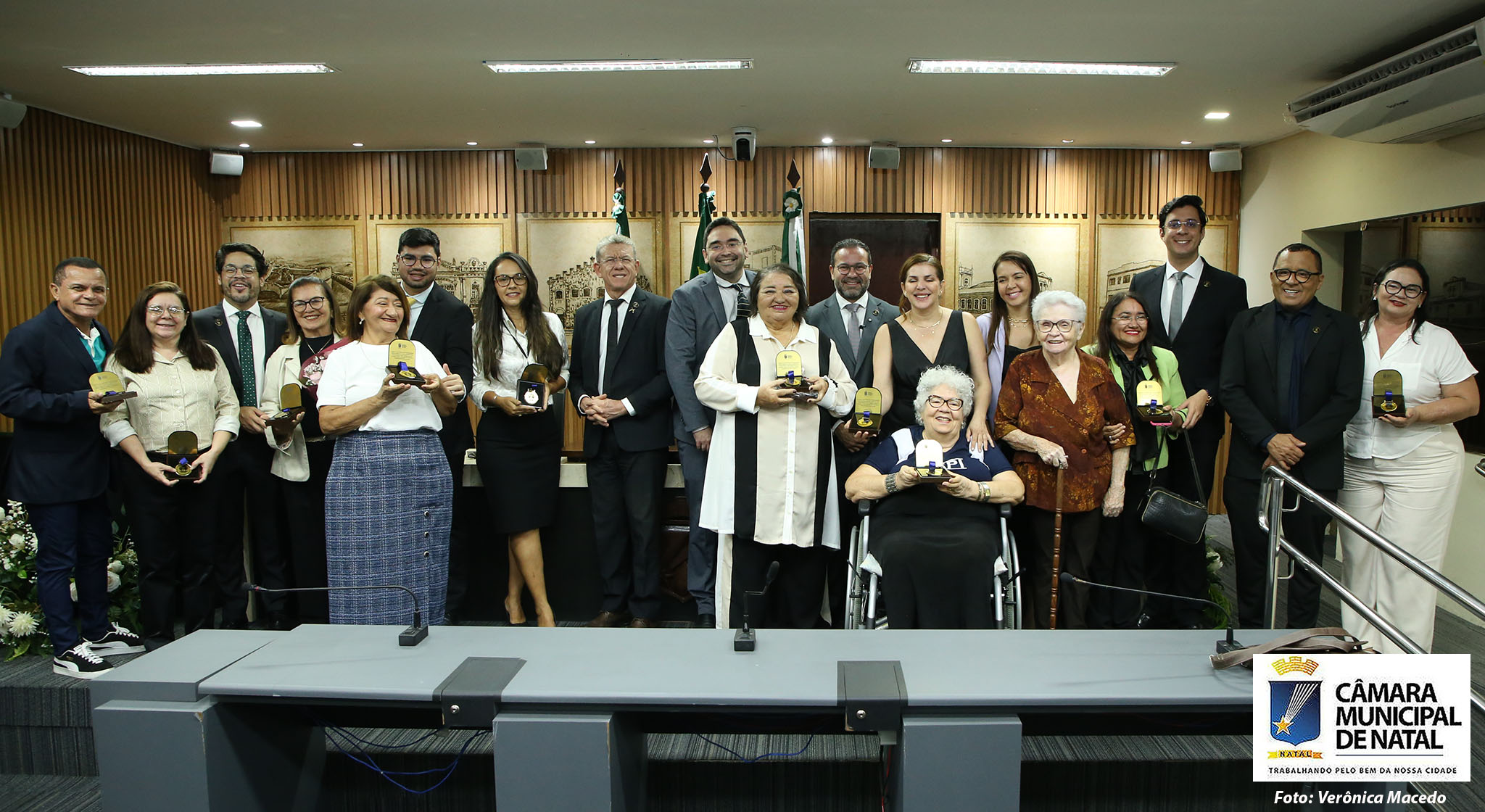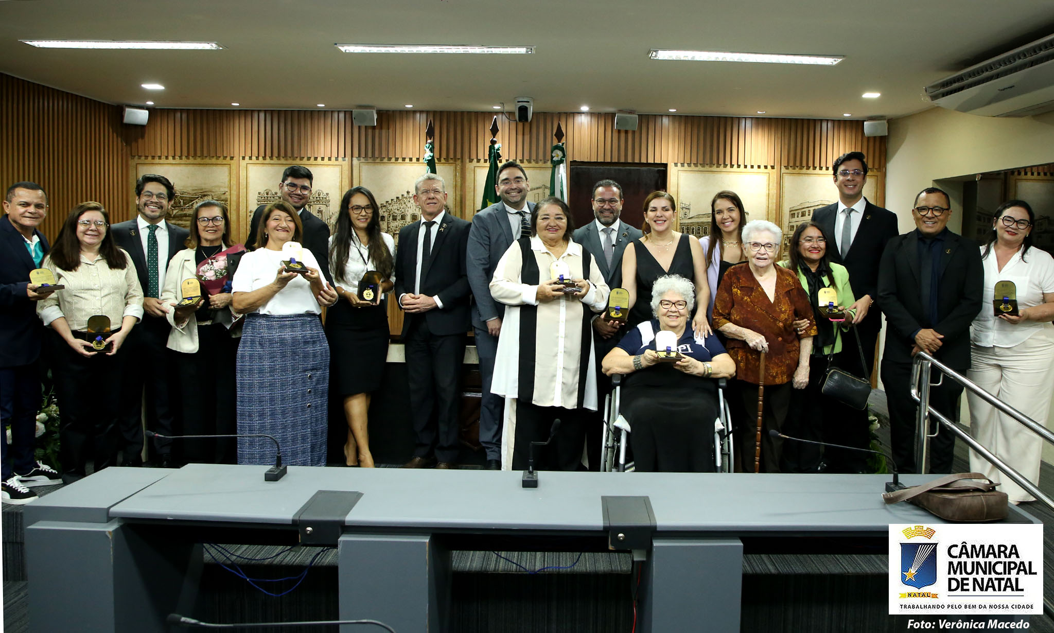 Em alusão ao outubro prateado, mês que exalta o envelhecimento saudável, a Câmara Municipal de Natal realizou, nesta quinta-feira (23), a sessão solene de entrega da Comenda Amigo da Pessoa Idosa, uma homenagem proposta pelo vereador Irapoã Nóbrega (Republicanos). A solenidade reconheceu 11 pessoas pela contribuição ao bem-estar da população idosa da capital, entre elas fundadores e dirigentes de instituições de longa permanência, assistentes sociais, gerontólogos, advogados e voluntários.