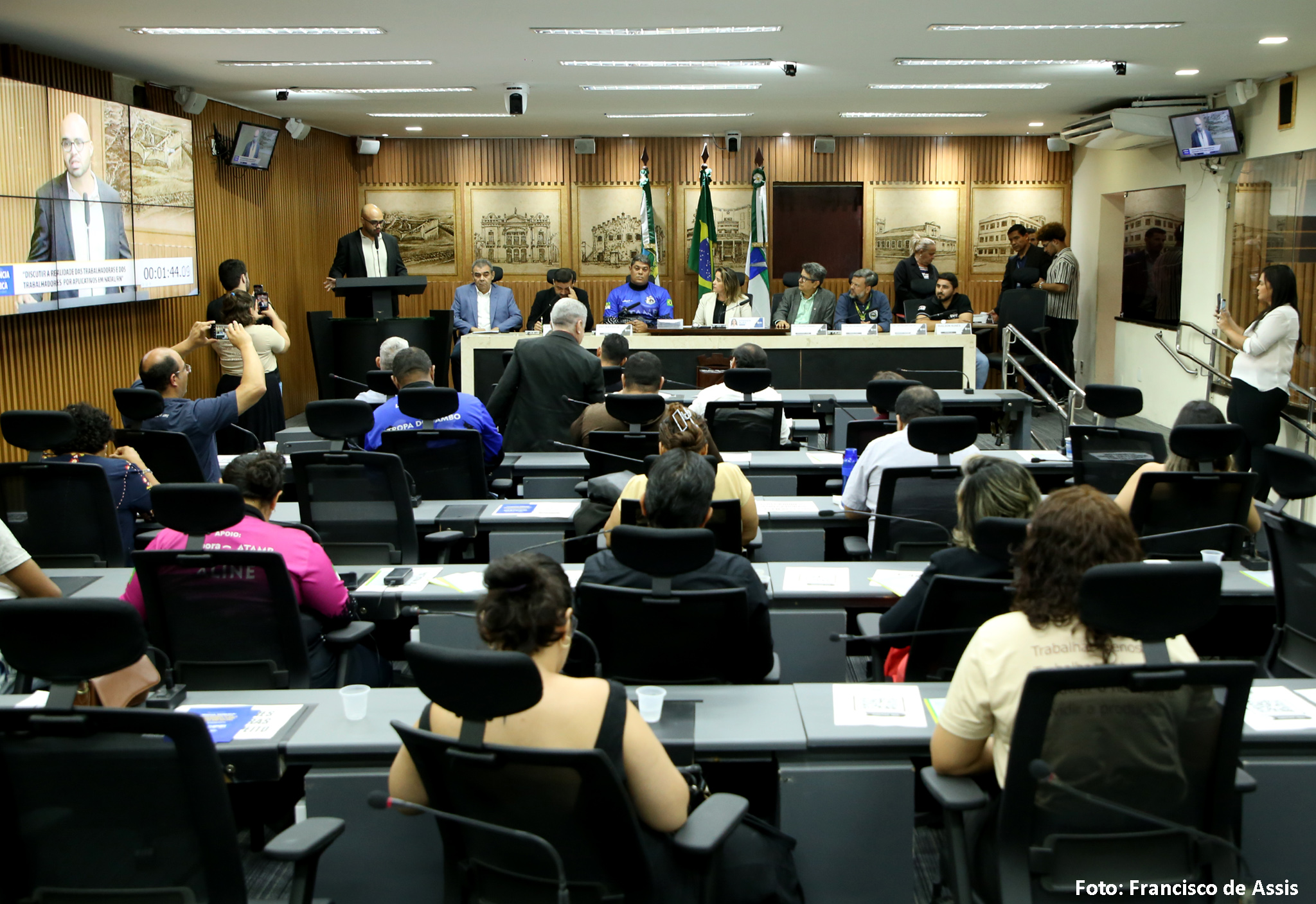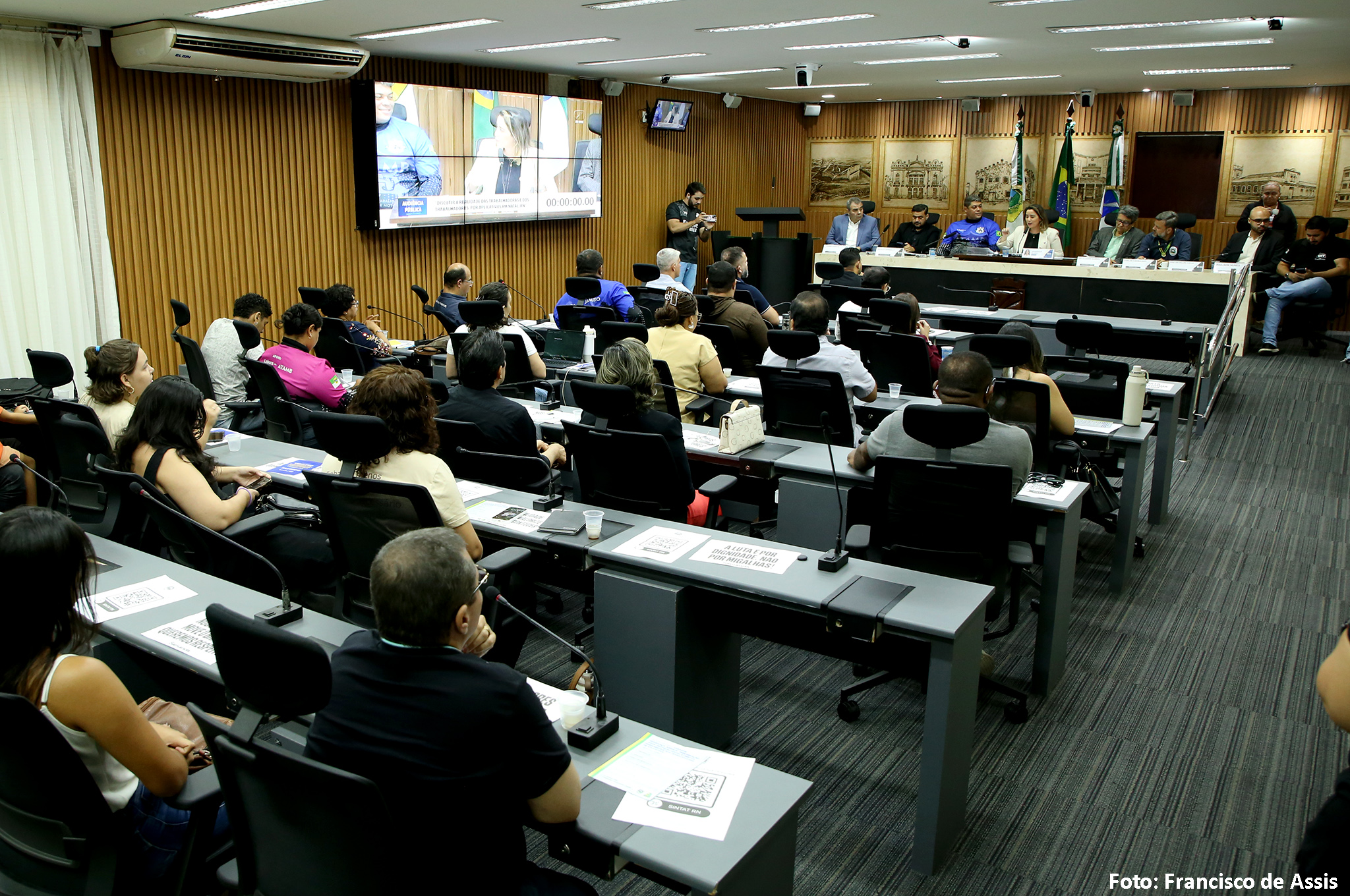 A Câmara Municipal de Natal realizou nesta sexta-feira (31) uma audiência pública para discutir a situação dos motoristas de aplicativos de transporte. O encontro, proposto pela vereadora Samanda Alves (PT), reuniu representantes da categoria, do setor produtivo e de órgãos públicos para debater questões como a defasagem nas tarifas pagas pelas plataformas, ausência de pontos de apoio, falta de capacitação e a necessidade de regulamentação da atividade no município.