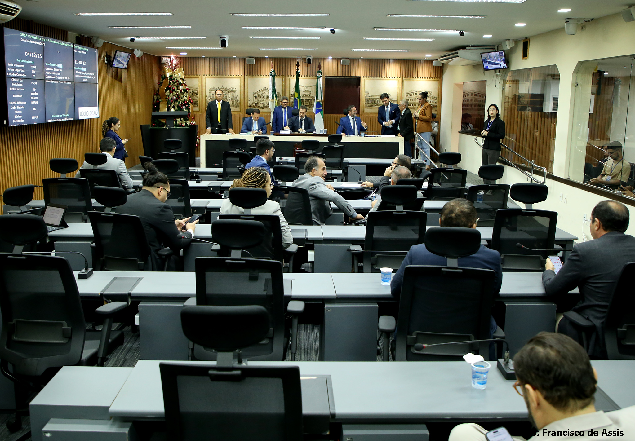O plenário da Câmara também analisou cinco processos de vetos do Poder Executivo, dos quais, apenas um foi derrubado pelos vereadores. O processo 103/2025 vetava, integralmente, o PL 110/2025, de autoria do vereador Tarcio de Eudiane (União Brasil), o qual versa sobre a responsabilidade pela infração de poluição sonora em estabelecimentos comerciais, bem como sobre os procedimentos de fiscalização e apreensão de equipamentos.