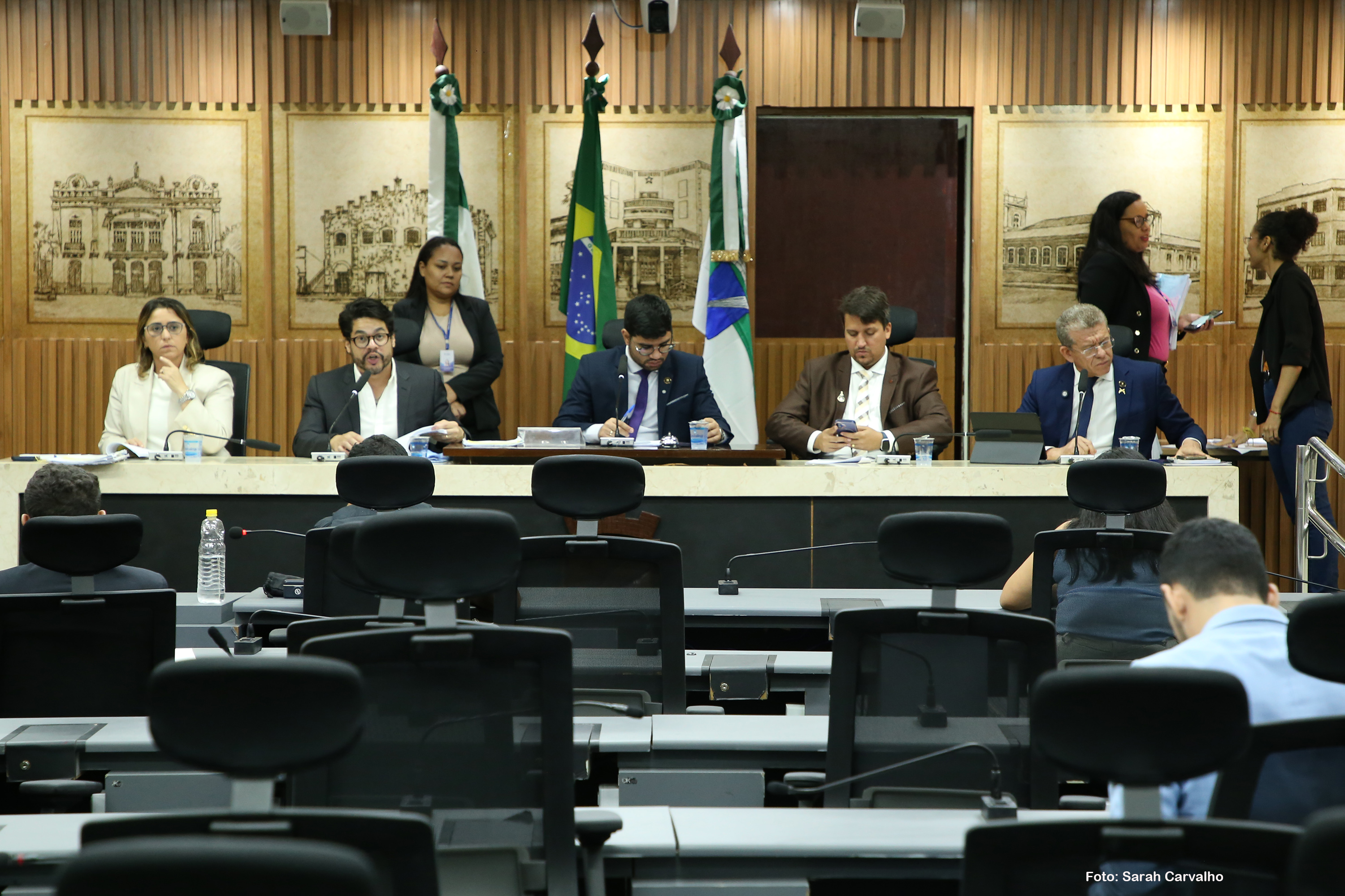 Além do vereador Daniell Rendall e da vereadora Samanda Alves, os parlamentares Léo Souza (Republicanos), Pedro Henrique (PP) e Subtenente Eliabe compuseram a mesa desta reunião da Comissão de Finanças, Orçamento, Controle e Fiscalização.