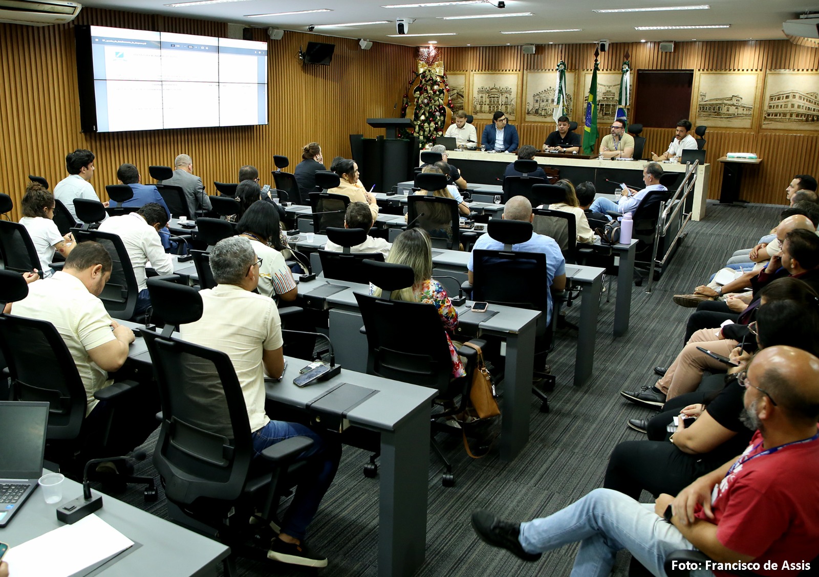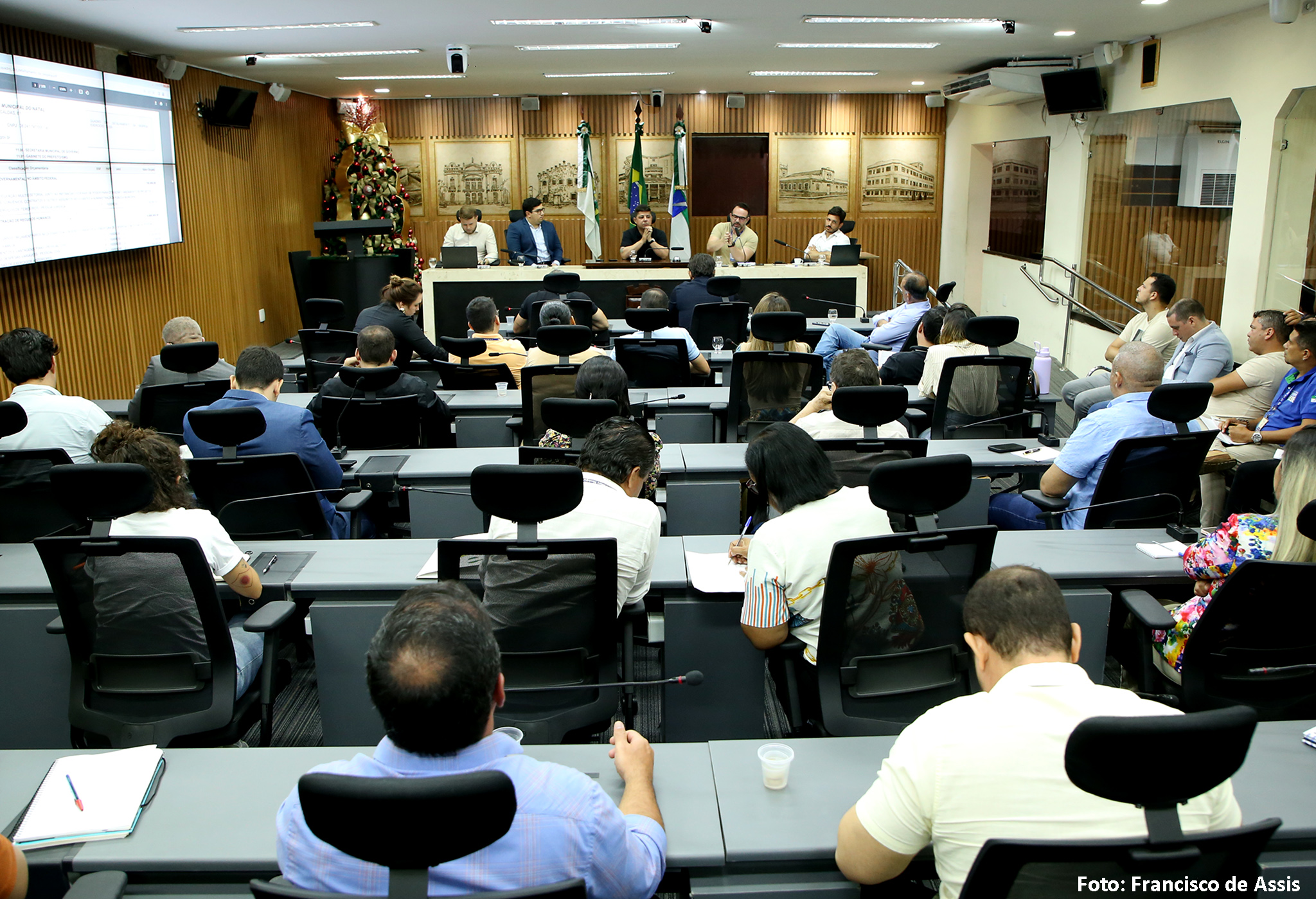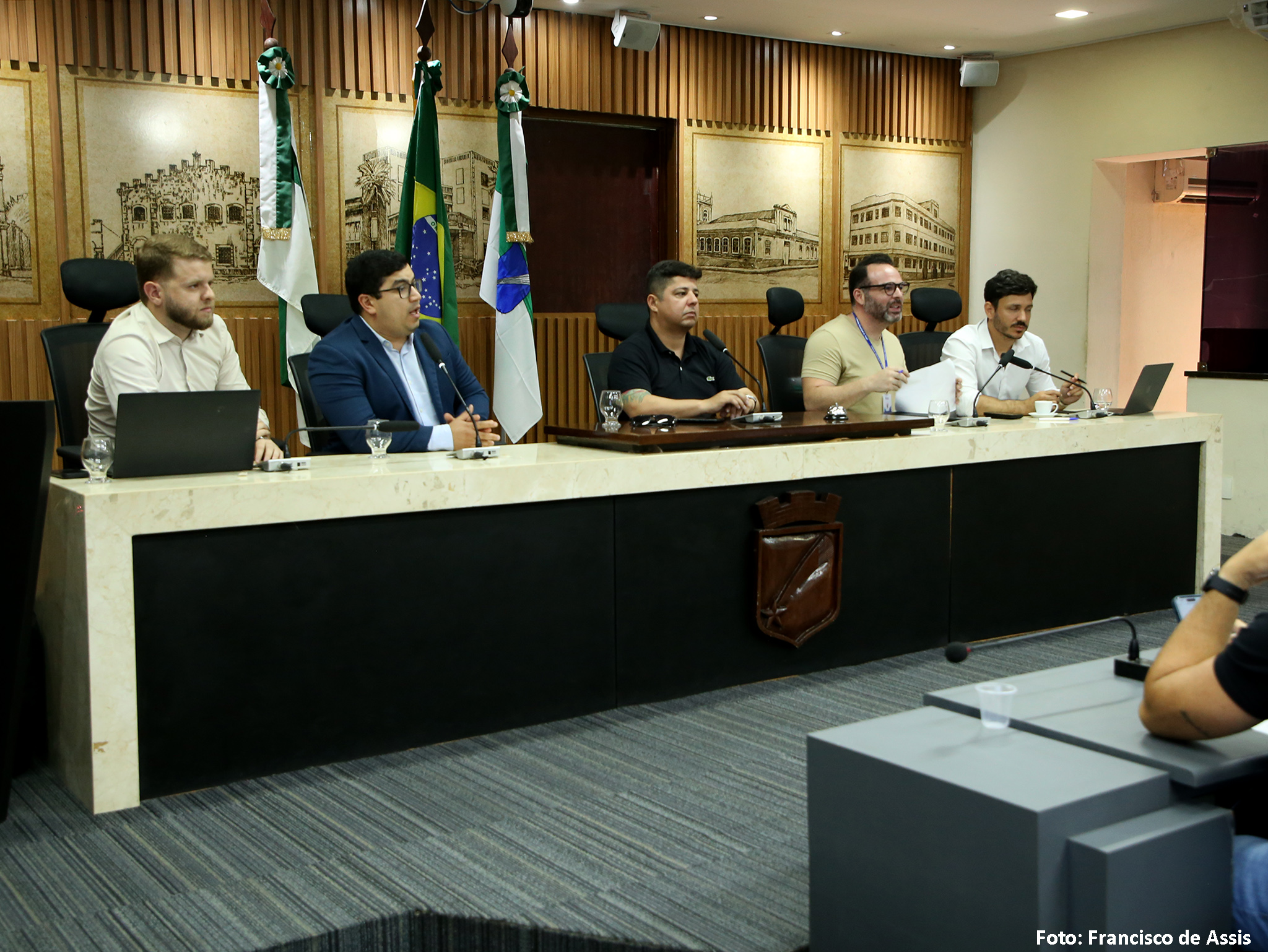A reunião foi presidida pelo vereador Daniel Santiago (PP) e também contou com a participação do procurador Leonardo Scherman, da CMN, e do
