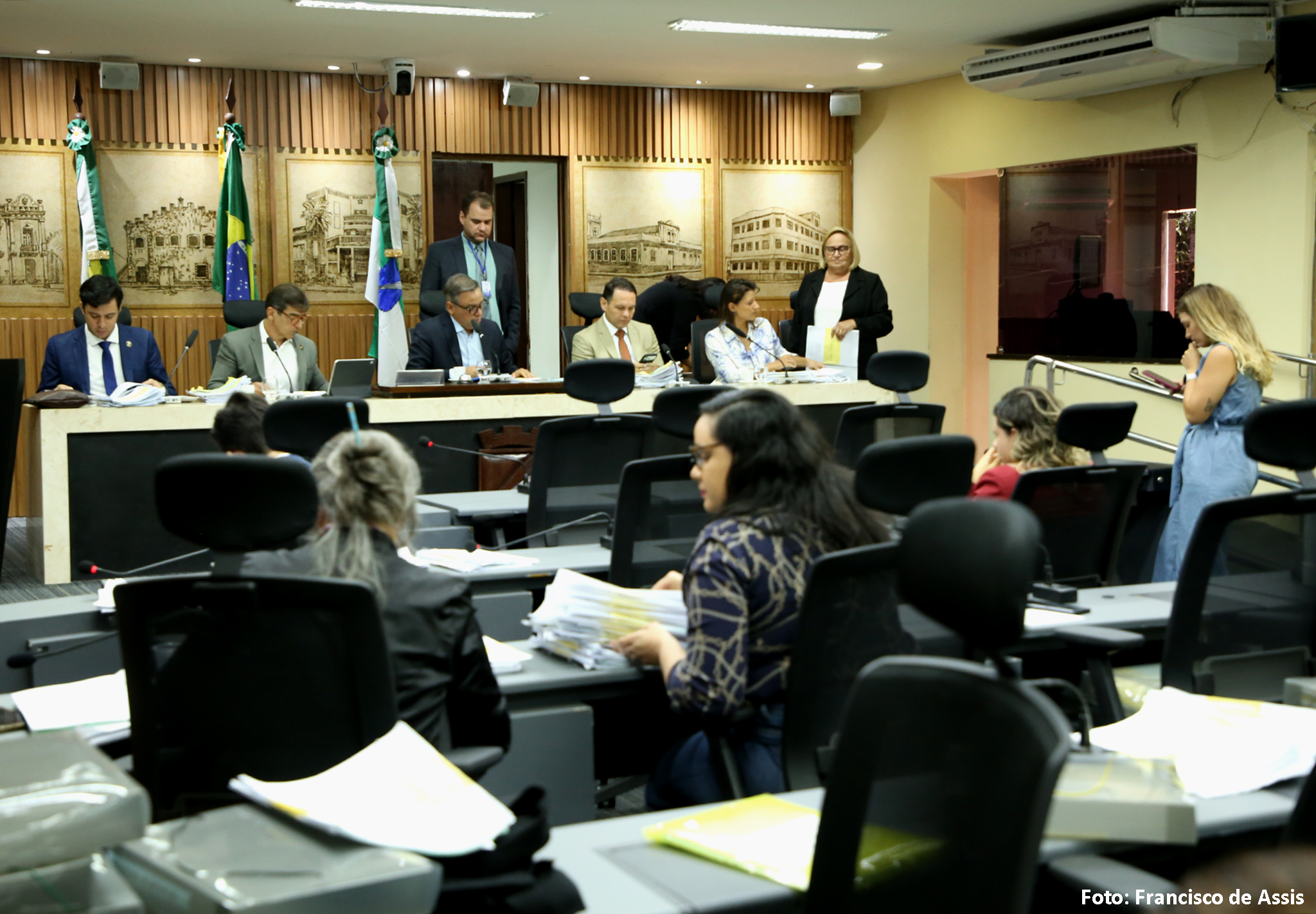 A Comissão de Legislação, Justiça e Redação Final (CLJR) iniciou os trabalhos do atual ano legislativo nesta segunda-feira (02), com uma pauta extensa. Mais de 60 matérias tiveram seus pareceres apreciados pelos membros e outras 118 foram distribuídas para análise. A reunião contou com as presenças dos vereadores Aldo Clemente (PSDB), Brisa Bracchi (PT), Camila Araújo (União), Fulvio Saulo (Solidariedade), Kleber Fernandes (Republicanos), Preto Aquino (Podemos) e Tony Henrique (PL).