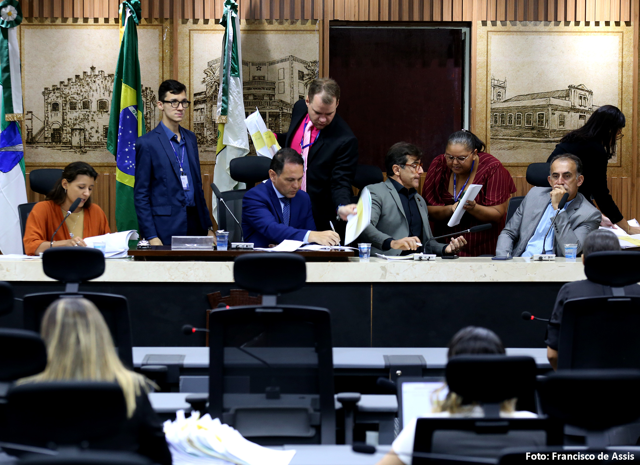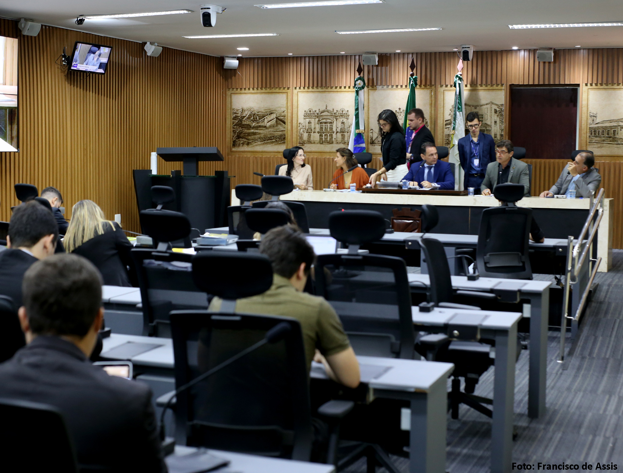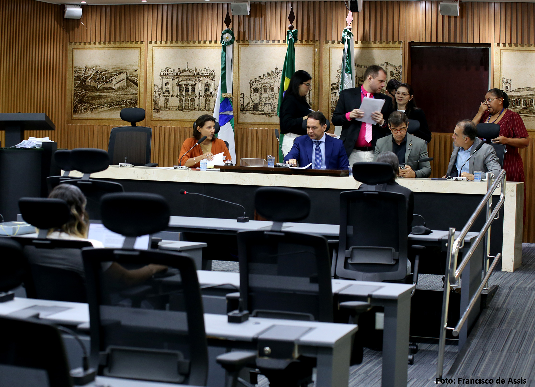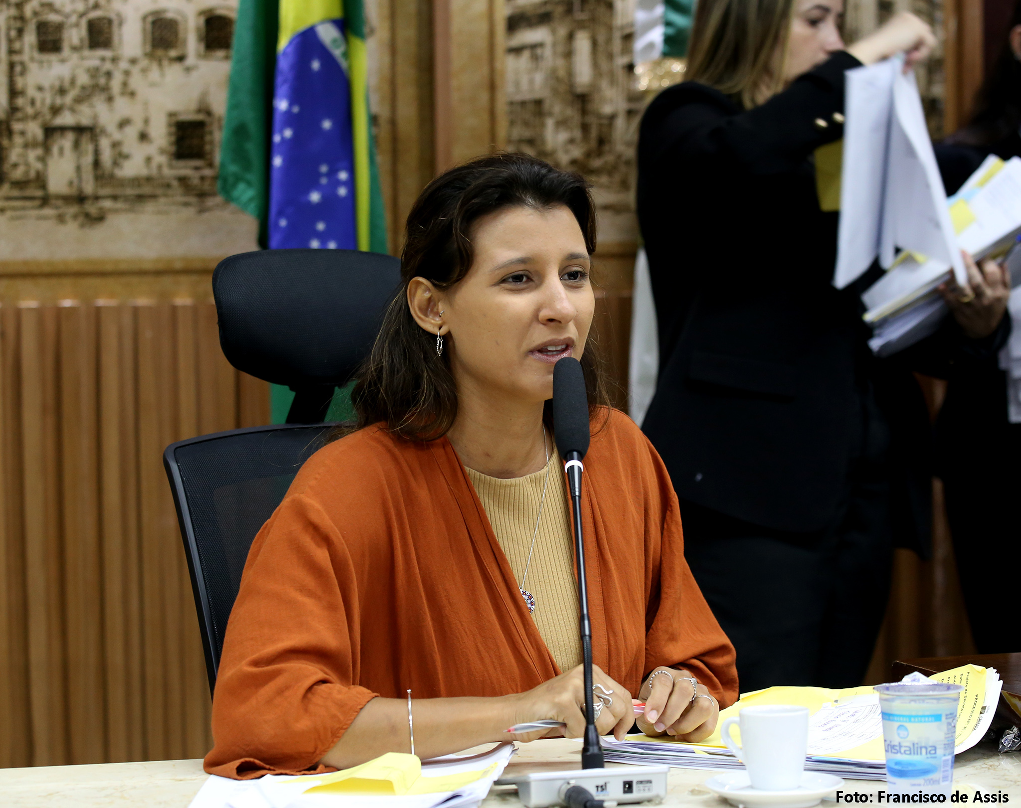 Além de Brisa Bracchi e de Kleber Fernandes, a reunião da Comissão de Legislação, Justiça e Redação Final contou, ainda, com a presença da vereadora Camila Araújo (União Brasil), e dos vereadores Fúlvio Saulo (Solidariedade) e Preto Aquino (Podemos).