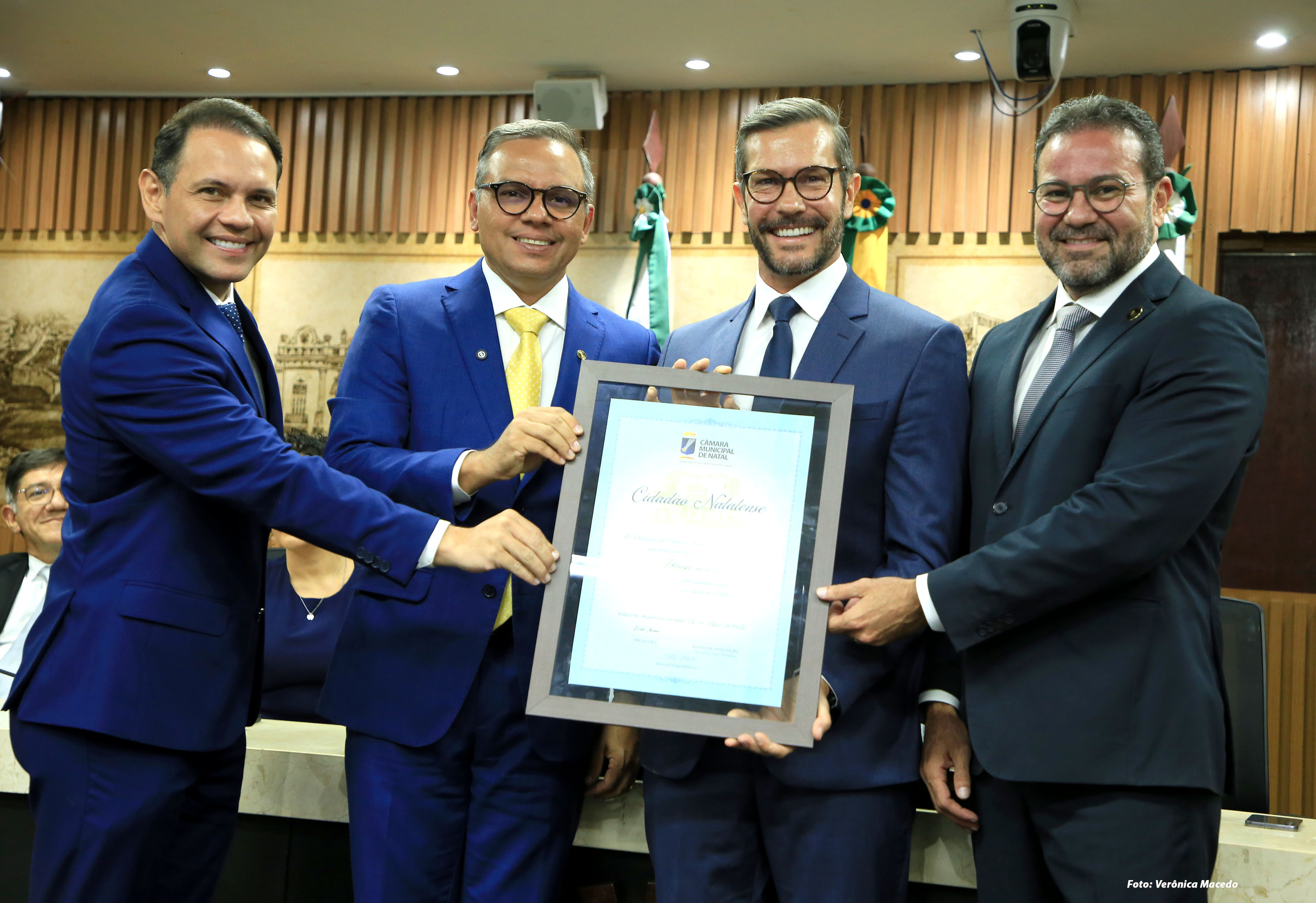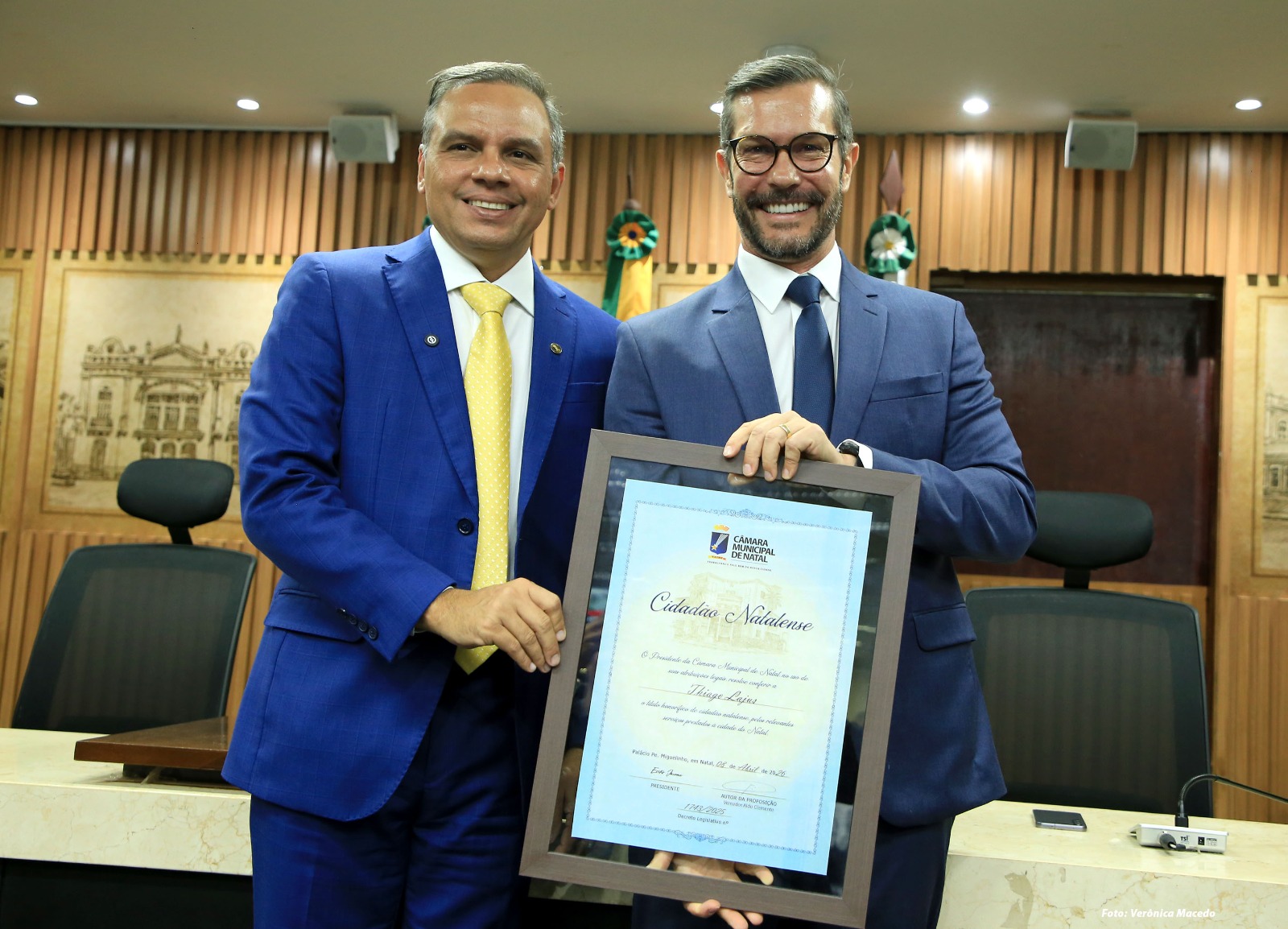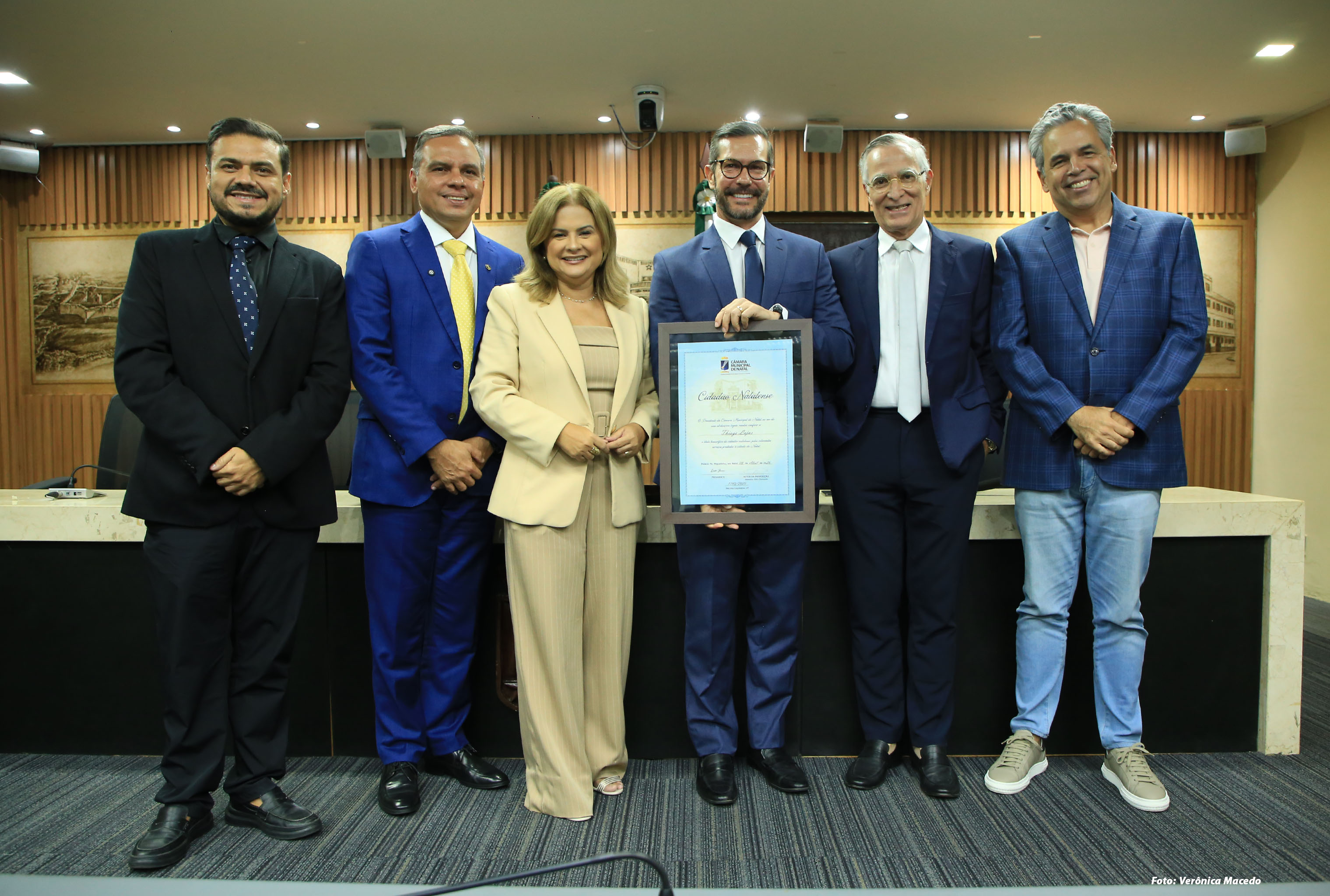A Câmara Municipal de Natal realizou, nesta quarta-feira (8), sessão solene para a entrega do Título de Cidadão Natalense ao diretor regional da InterTV, Thiago Lajus. De proposição do vereador Aldo Clemente, a homenagem reconheceu os serviços prestados pelo executivo ao município, especialmente na área da comunicação, com destaque para a transformação digital da radiodifusão e a contribuição para o desenvolvimento socioeconômico da capital e do estado.