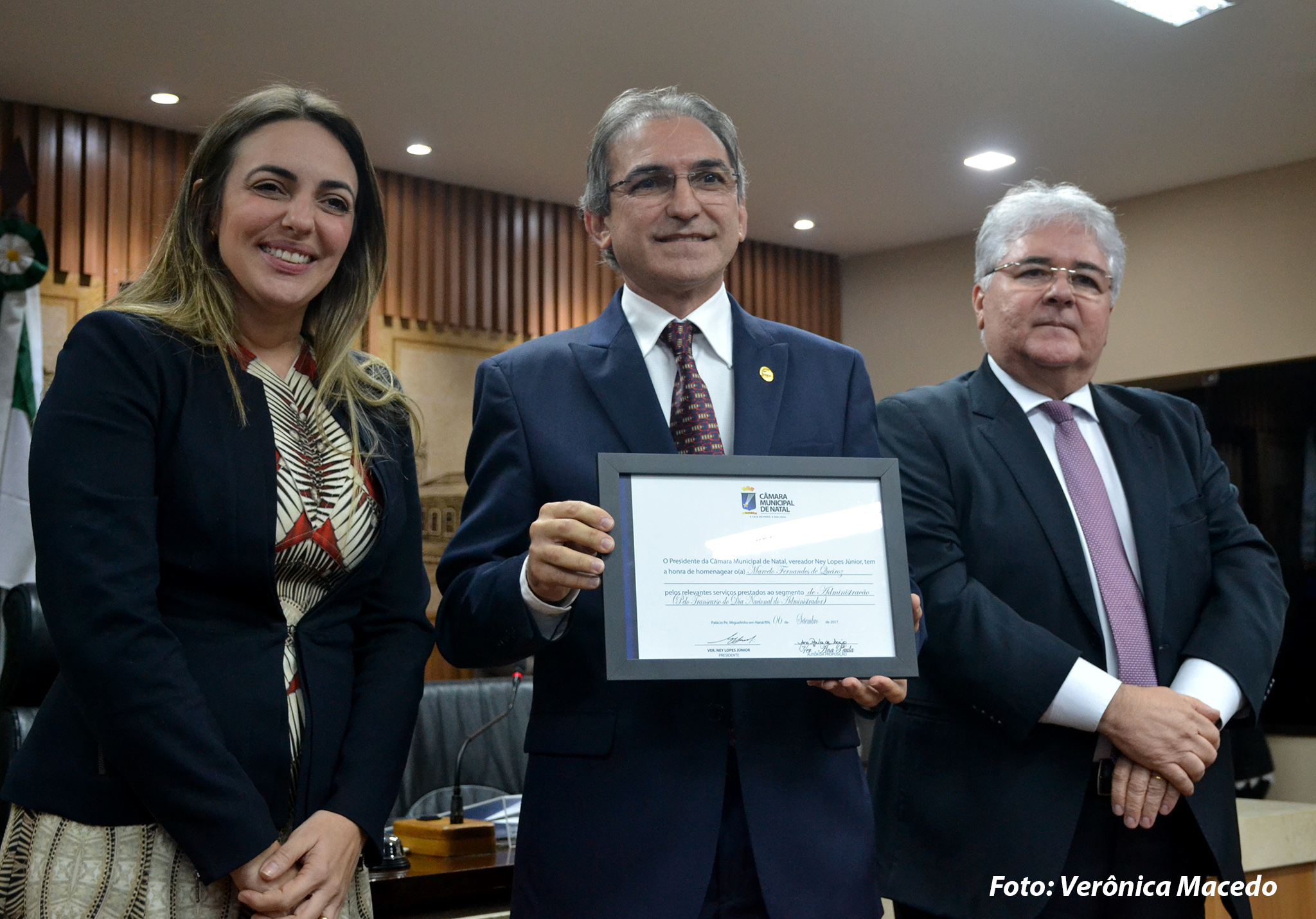 A Câmara Municipal de Natal promoveu, na noite desta quarta-feira (6), uma sessão solene em homenagem ao Dia do Administrador, que será celebrado no próximo sábado (9). A cerimônia foi realizada por proposição dos vereadores Ana Paula Araújo (PSDC) e Sueldo Medeiros (PHS) e homenageou diversos administradores da cidade.